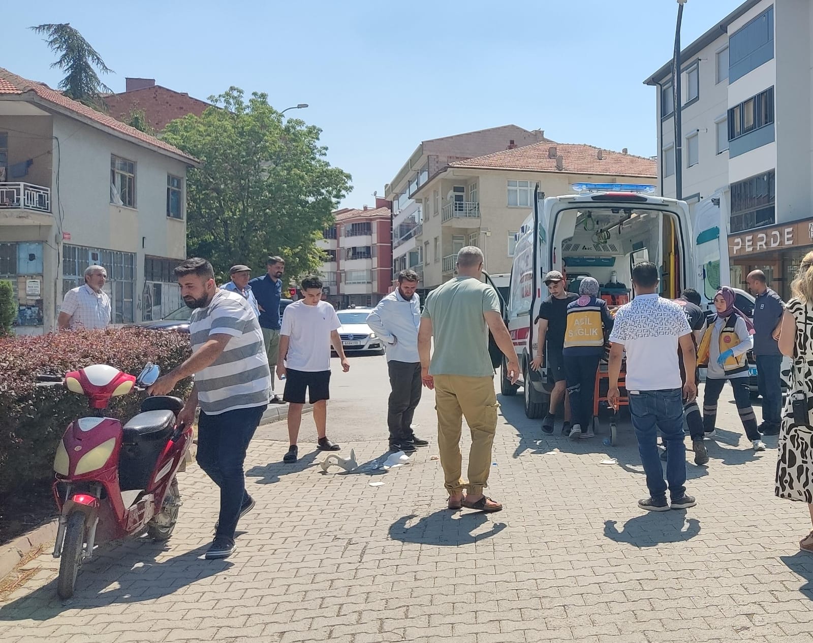 Çarpmanın etkisiyle devrilen elektrikli bisikletin sürücüsü Ş. yaralandı. İhbar üzerine kaza yerine 112 Sağlık ve Polis ekipleri sevk edildi.
