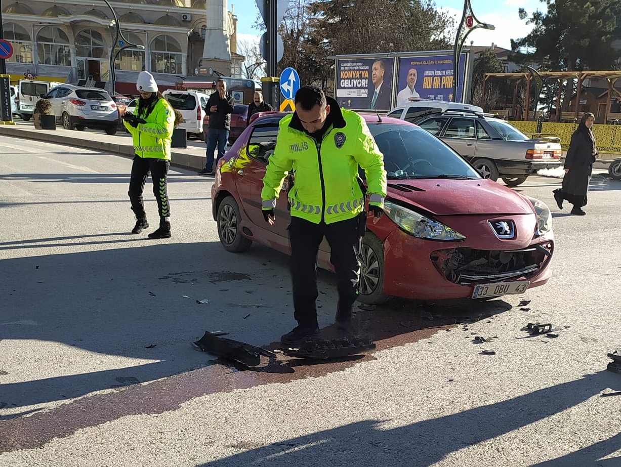 Kaza, ilçe merkezi Cumhuriyet meydanı kavşağında meydana geldi. Alınan bilgiye göre, H. E. idaresindeki 33 DBU 43 plakalı otomobil ile Suriye uyruklu V. F. idaresindeki 42 ADV 356 plakalı hafif ticari araç çarpıştı. Kazada sürücüler yara almazken hafif ticari araçta bulunan 2 yaşındaki V. F. yaralandı.
