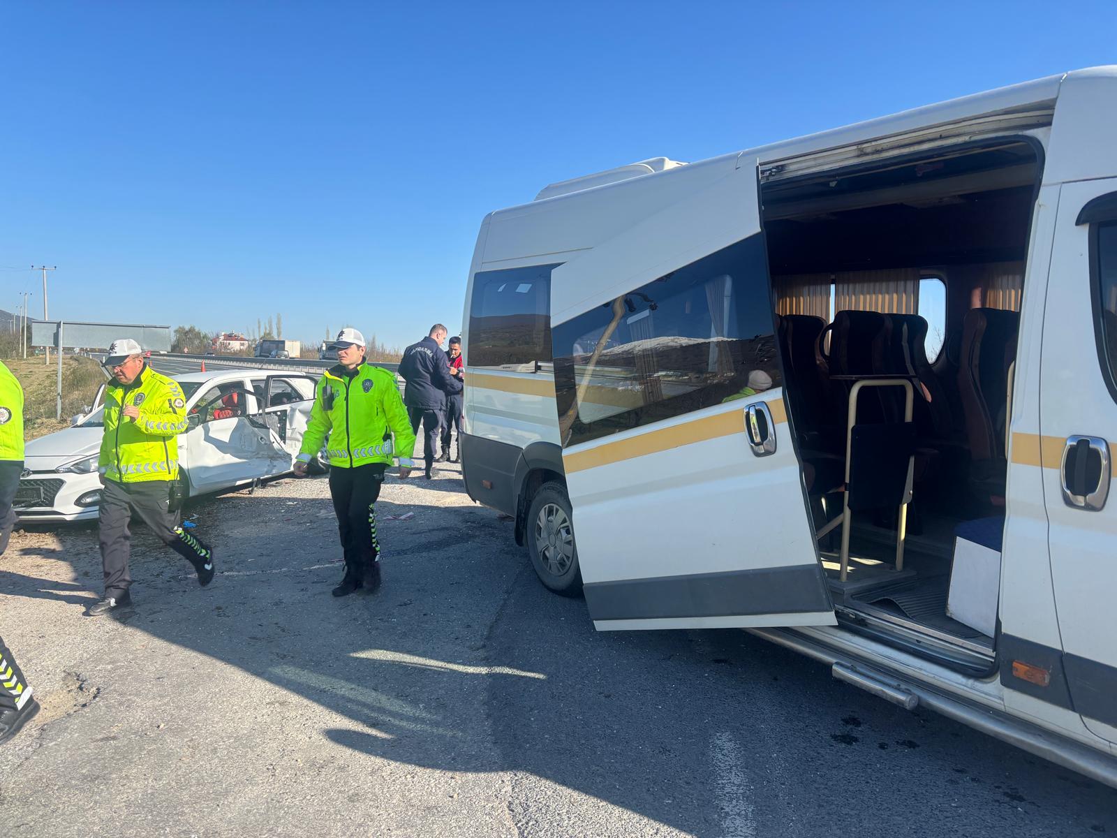 Konya'nın Akşehir ilçesinde otomobilin öğrenci servisine çarpması sonucu 5 kişi yaralandı.