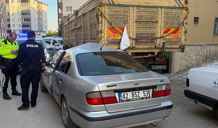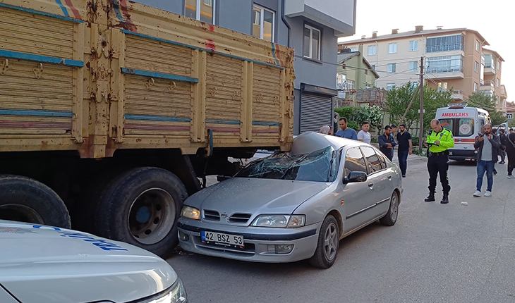 Kerziban Erdoğan idaresindeki 42 BSZ 53 plakalı otomobil Kızılcalar Mahallesi Süleyman Şah Caddesi 153391 Sokak'ta yolda park halinde bulunan Veysel Doğan'a ait 42 RD 309 plakalı kamyonun altına girdi.