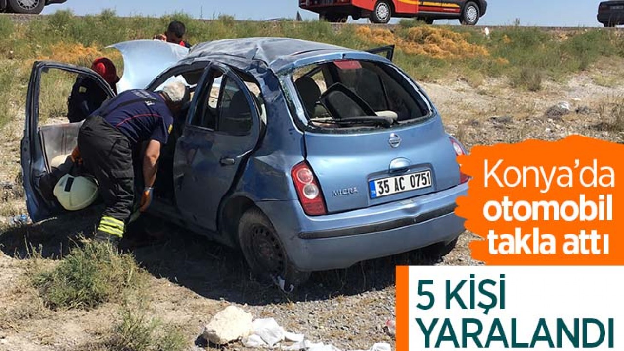 Konya'da sürücüsünün kontrolünden çıkan otomobilin takla atarak şarampole devrilmesi sonucu 5 kişi yaralandı.