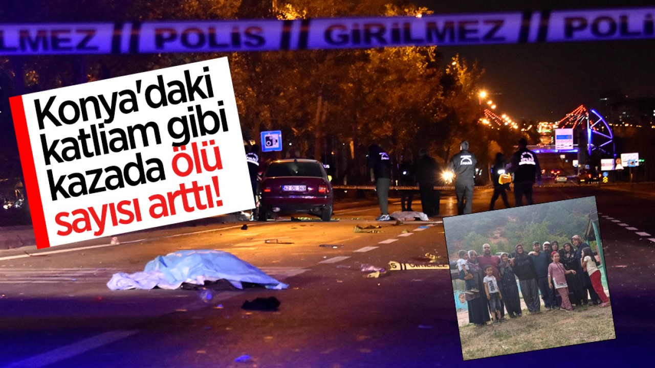 Konya'da otomobilin yayalara çarptığı kazada hayatını kaybedenlerin sayısı 6'ya yükseldi.
