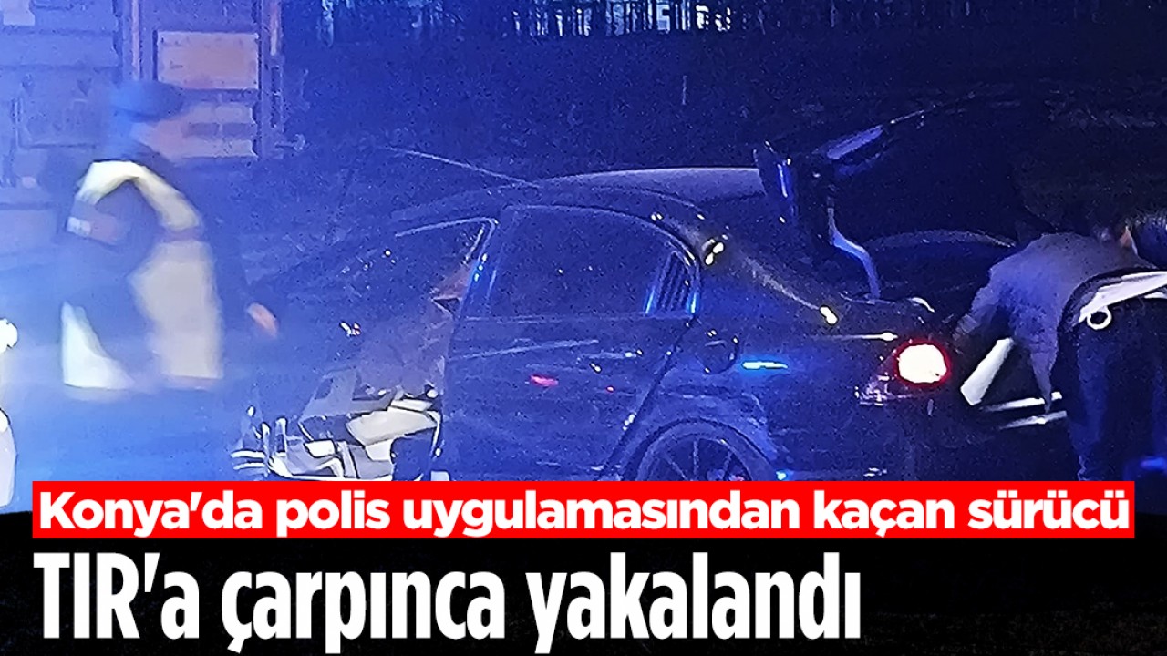 Konya'da polisin "dur" ihtarına uymayan ve polis aracına çarparak kaçan sürücü, Seydişehir ilçesinde TIR'a çarpınca yakalandı.