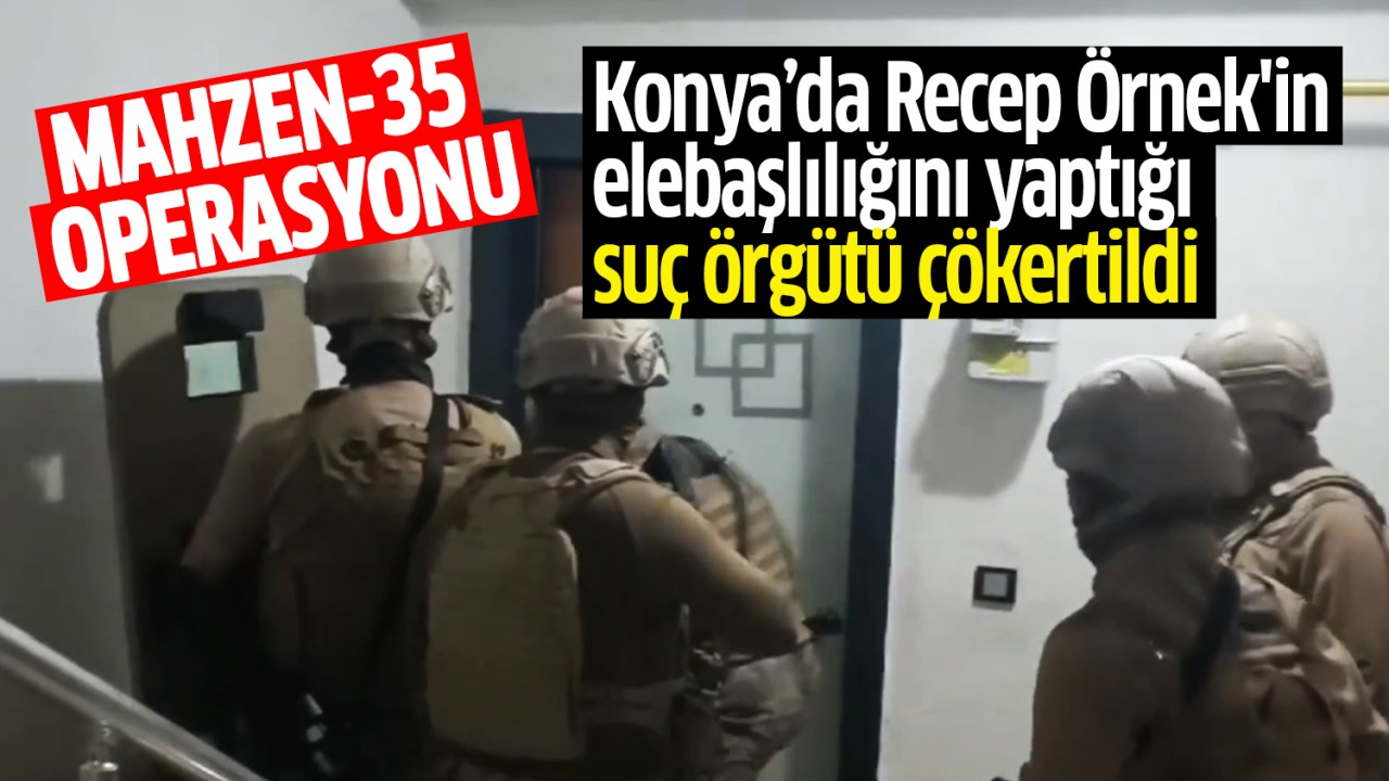 İçişleri Bakanı Ali Yerlikaya, Konya'nın da aralarında bulunduğu 6 ilde düzenlenen "Mahzen-35" operasyonlarında 6 organize suç örgütünün çökertildiğini ve aralarında elebaşılarının da yer aldığı 46 şüphelinin yakalandığını bildirdi. Operasyonda Konya’da Recep Örnek'in elebaşlılığını yaptığı suç örgütü de çökertildi.