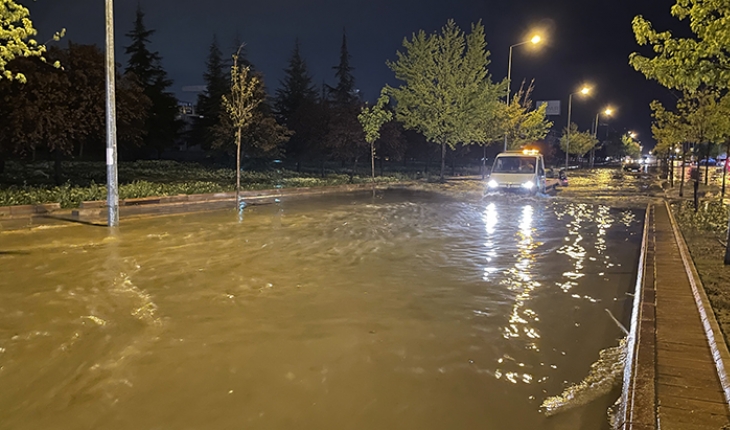 Kent merkezinde etkisini gösteren kuvvetli yağış nedeniyle yollarda su birikintileri oluştu.