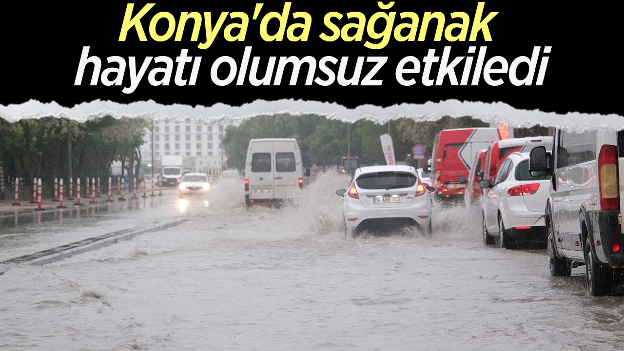 Konya'da, kent merkezinde ve bazı ilçelerde etkili olan sağanak hayatı zorlaştırdı.