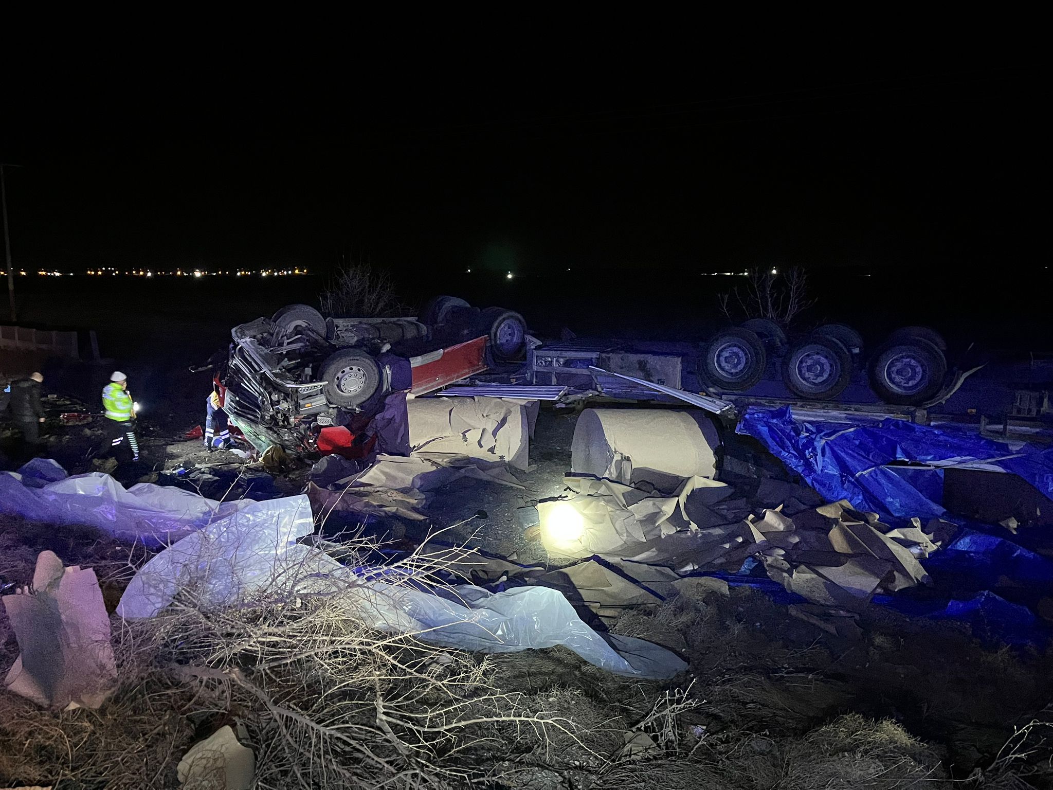 Konya'nın Karapınar ilçesinde şarampole devrilen TIR'ın şoförü Ahmet Zorlu (44), hayatını kaybetti.