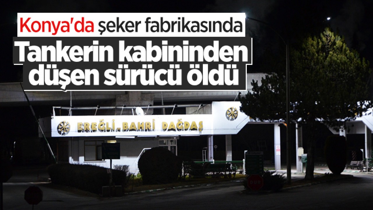 Konya'da Ereğli Bahri Dağdaş Şeker Fabrikası'nda tankerin kabininden düşen sürücü Mehmet Sarı (59), boynunun kırılması sonucu yaşamını yitirdi.