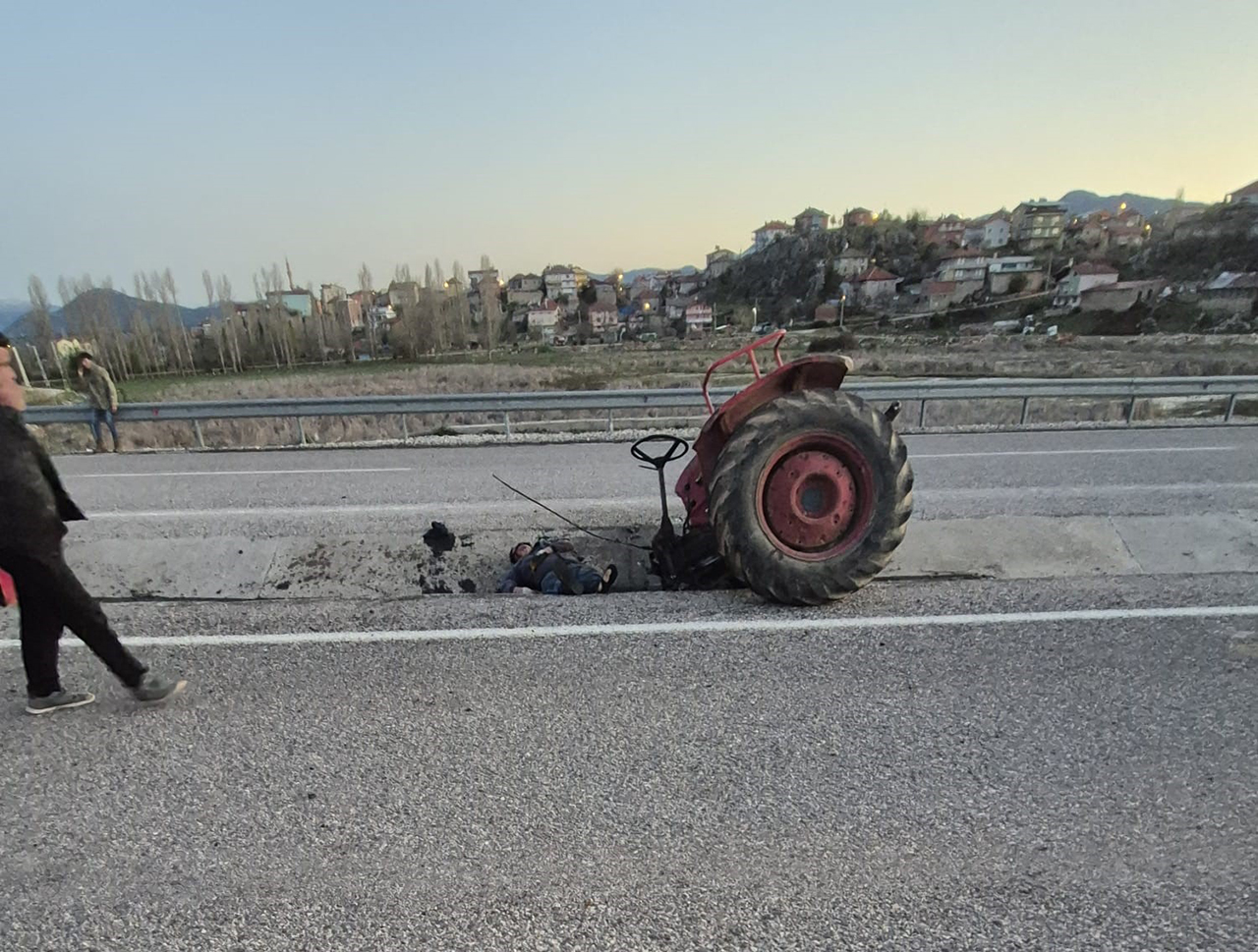 Konya'nın Beyşehir ilçesinde hareket halindeki traktörün yol üzerinde ikiye bölünmesi sonucu yaşanan kazada 1 kişi hayatını kaybederken sürücü yaralandı.
