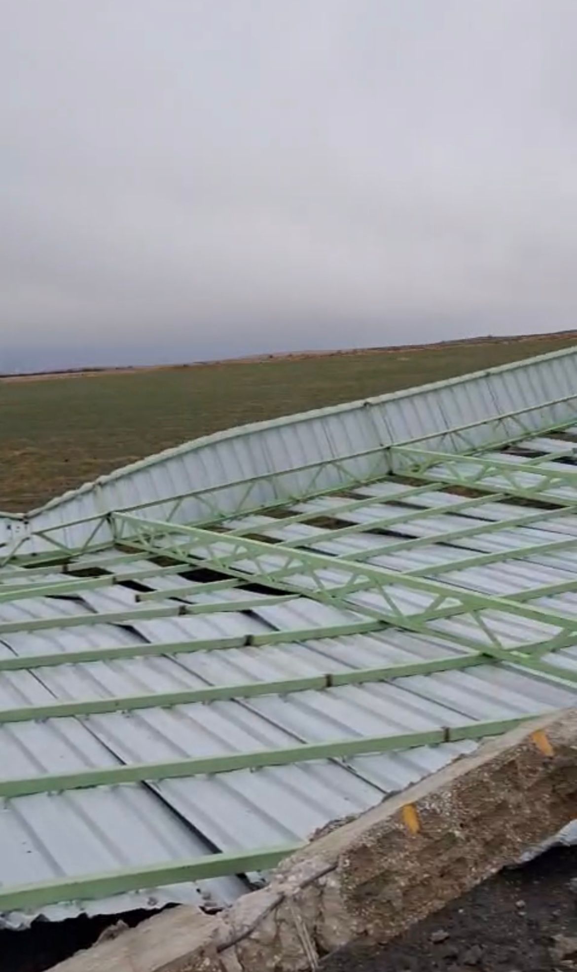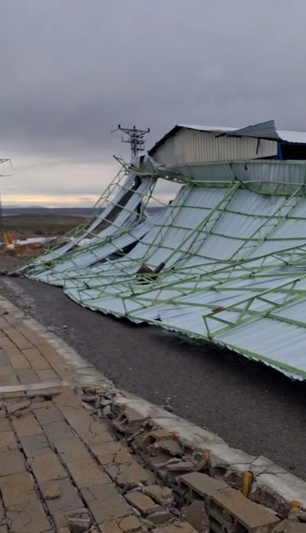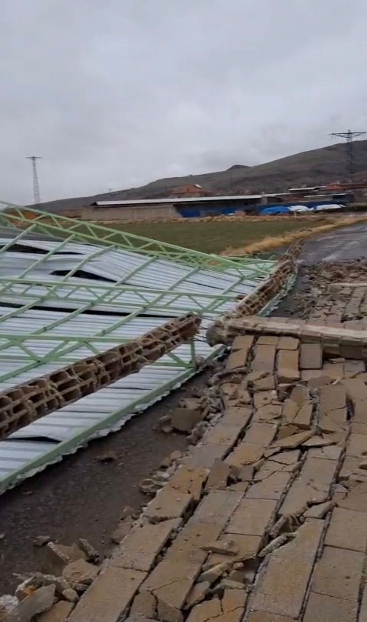 Rüzgarın etkisiyle hayvanların üzerindeki demir korumalar da yerinden söküldü. Yıkılan duvar parçaları ve demir aksam yola savrulurken, çevrede kısa süreli panik yaşandı.
