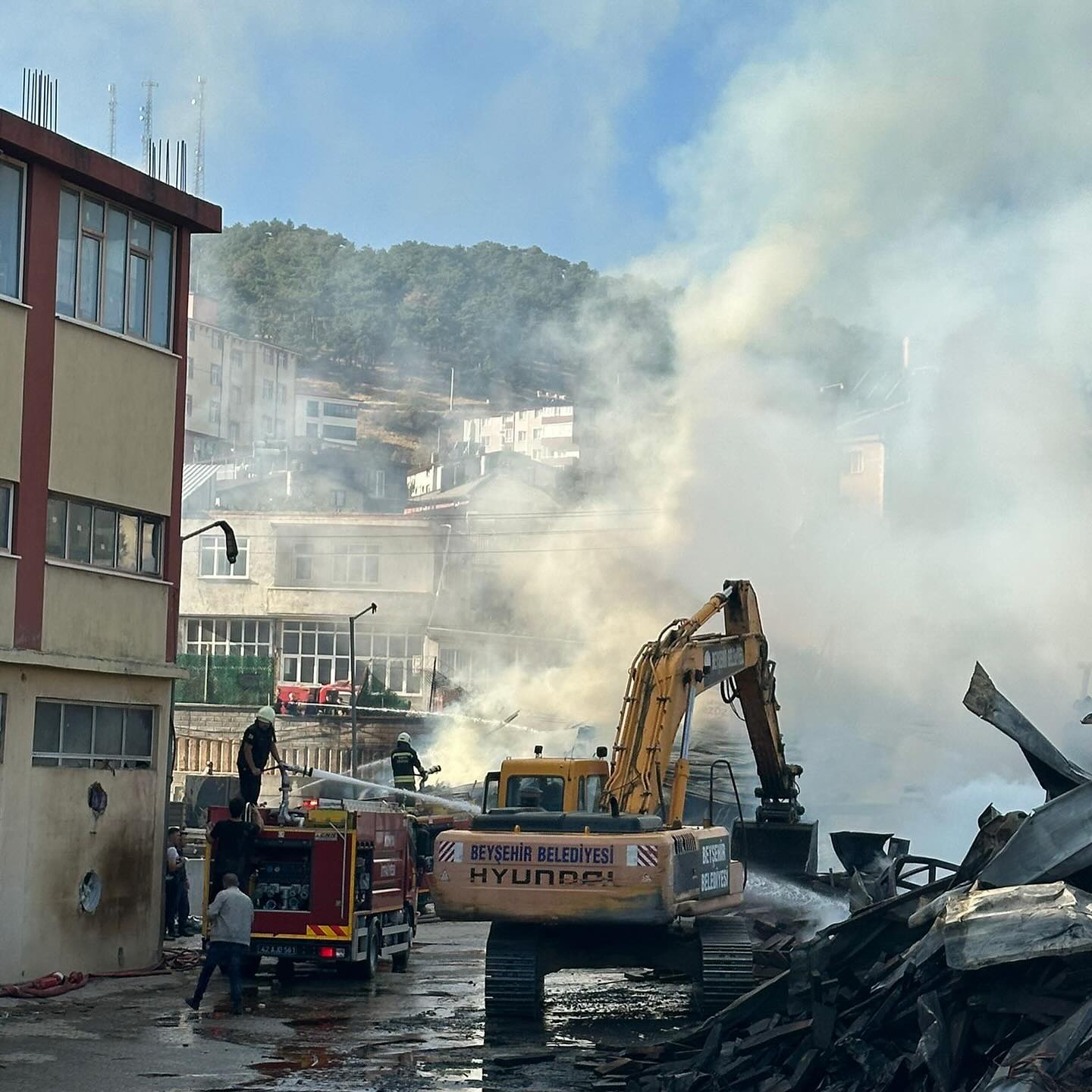 Konya'nın Beyşehir ilçesinde silah üretimi yapılan fabrikada çıkan yangın kontrol altına alındı.