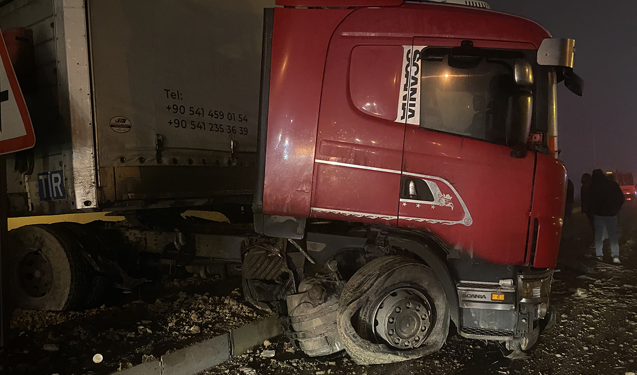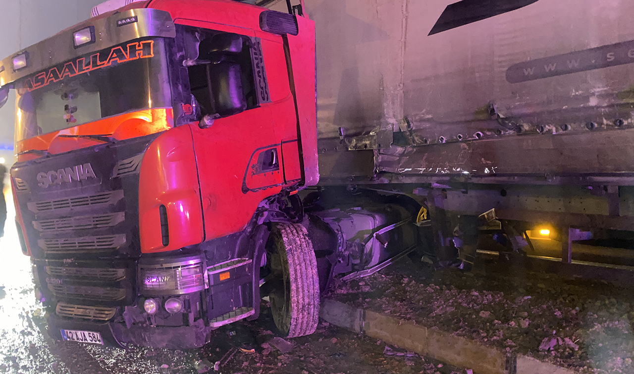 Sürücüsü henüz bilinmeyen 42 AJA 584 plakalı tır, D-300 kara yolunda refüjdeki aydınlatma direğine çarptı.