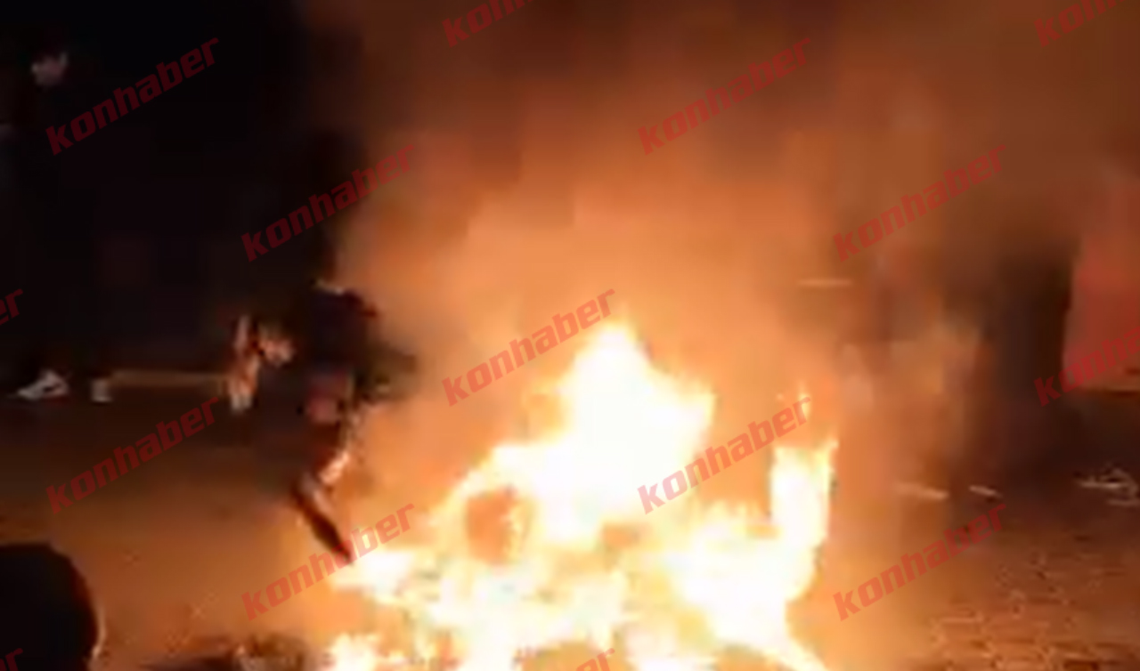 Konya'da şivlilik eğlencesi sırasında ateşin üzerinden atlayan iki çocuk havada çarpışarak alevlerin üzerine düştü.