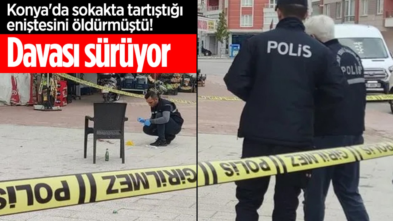 Konya'nın Karatay ilçesinde sokakta tartıştığı eniştesini bıçaklayarak ölümüne neden olduğu iddiasıyla tutuklanan sanığın yargılanmasına devam edildi.