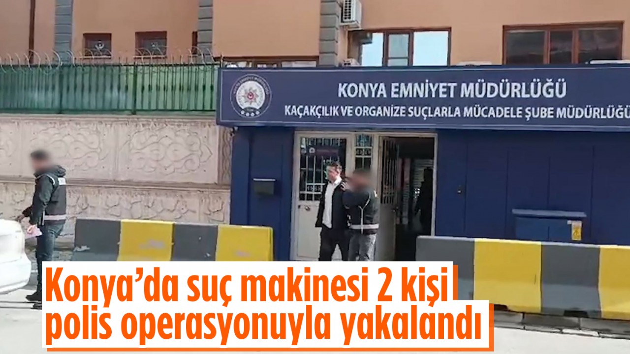 Konya'da hırsızlık ve dolandırıcılık suçlarından toplamda 45 yıl kesinleşmiş hapis cezası bulunan 2 şahıs polis ekiplerince yakalanarak gözaltına alındı.