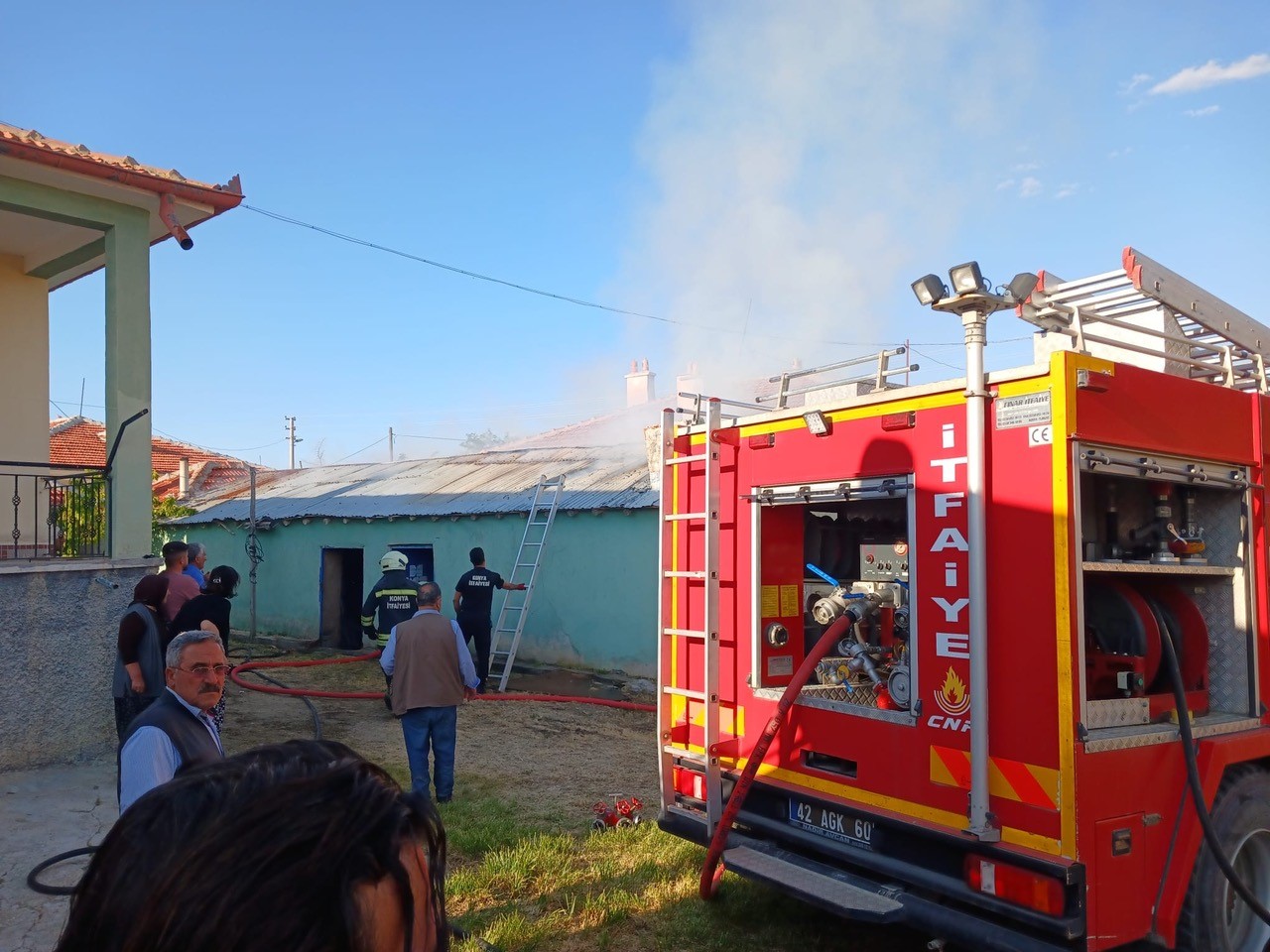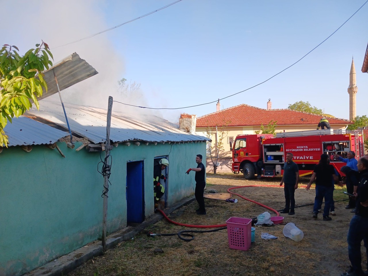 Konya’nın Kulu ilçesinde tandır evinde yapılan temizlikte yakılan kâğıt ve çöpler çatıyı yaktı.