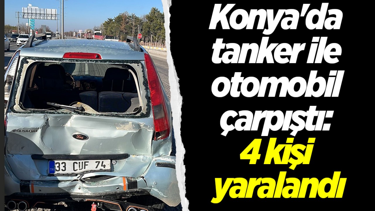 Konya'nın Karapınar ilçesinde tanker ile otomobilin çarpışması sonucu 4 kişi yaralandı.