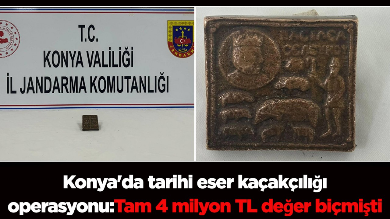 Konya'nın Beyşehir ilçesinde, Beyşehir İlçe Jandarma Komutanlığı, Jandarma Dedektifleri ve JASAT ekipleri, düzenlenen operasyonda, M.Ç. isimli bir şahsın ortaçağ dönemine ait tarihi bir tableti 4 milyon TL karşılığında satmaya çalıştığını tespit etti.