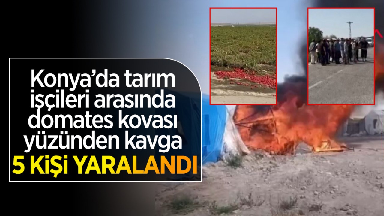 Konya'nın Ereğli ilçesinde tarım işçileri arasında domates kovası yüzünden çıkan kavga da 1'i ağır 5 kişi yaralandı. İşçilerden bazıları, karşı grubun kaldığı çadırları ateşe verdi.