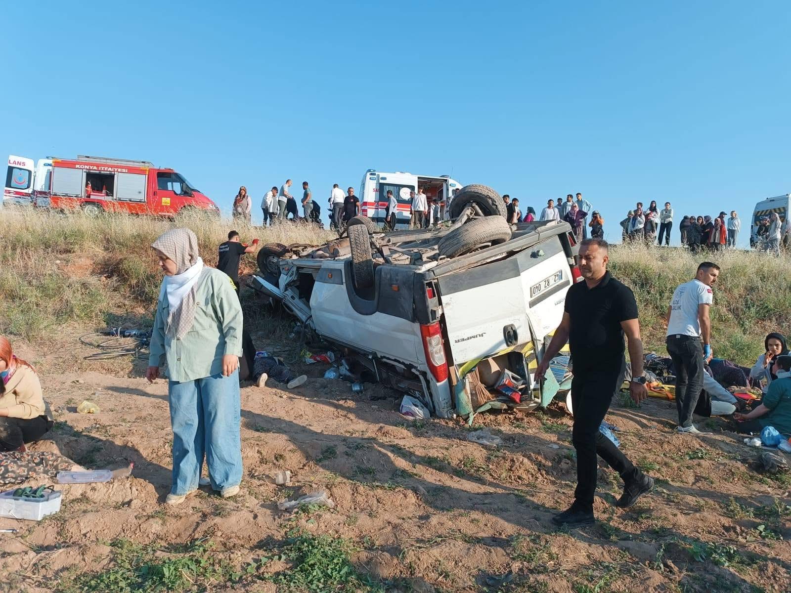 Konya'nın Yunak ilçesinde tarım işçilerini taşıyan araç devrildi. Gelen ilk bilgilere göre kazada 15 kişi yaralandı