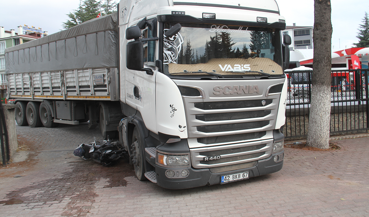Konya'nın Beyşehir ilçesinde TIR ile motosiklet çarpıştı. Meydana gelen kazada 2 kişi TIR kabininin altında kaldı.