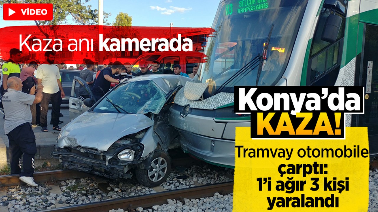 Konya'nın Selçuklu ilçesinde tramvayın otomobile çarpması sonucu 1'i ağır 3 kişi yaralandı. Öte yandan kaza anı güvenlik kamerasına yansıdı.
