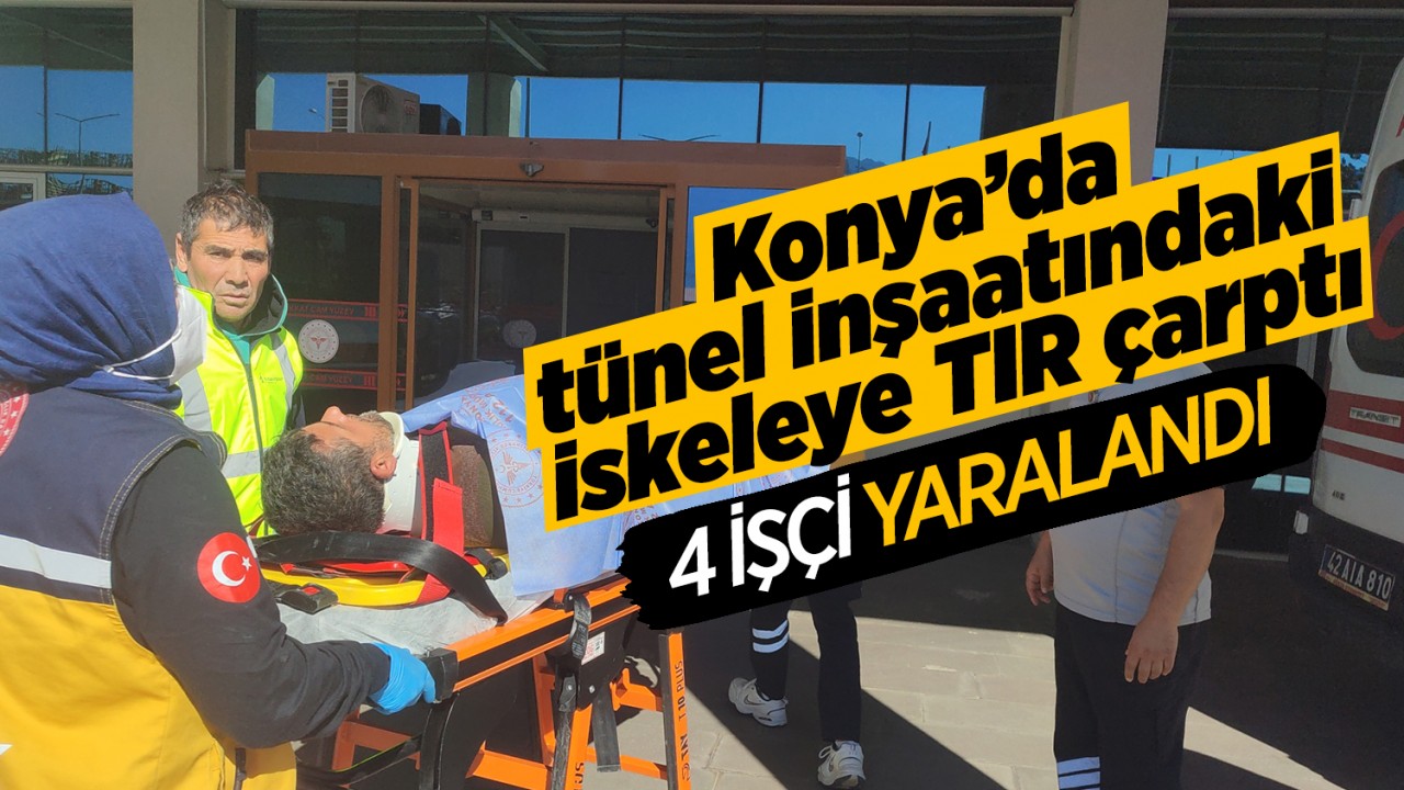 Konya'nın Seydişehir ilçesinde tünel inşaatındaki iskeleye tırın çarpması sonucu düşen 4 işçi yaralandı.