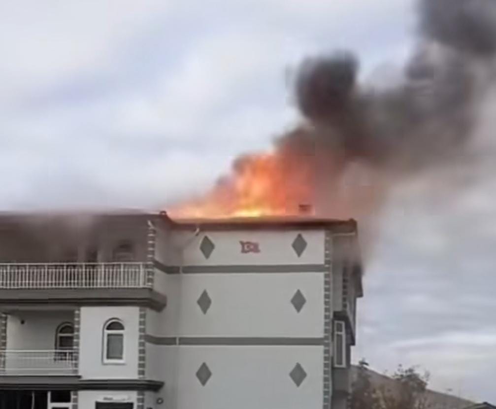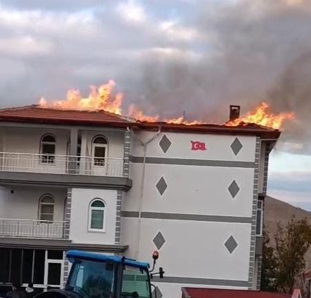 Alınan bilgiye göre, ilçeye bağlı Yaraşlı Mahallesinde Mehmet Y.'ye ait üç katlı bir evin çatı kısmında henüz bilinmeyen bir nedenle yangın çıktı. Yangın rüzgarında etkisiyle çatıyı sardı.