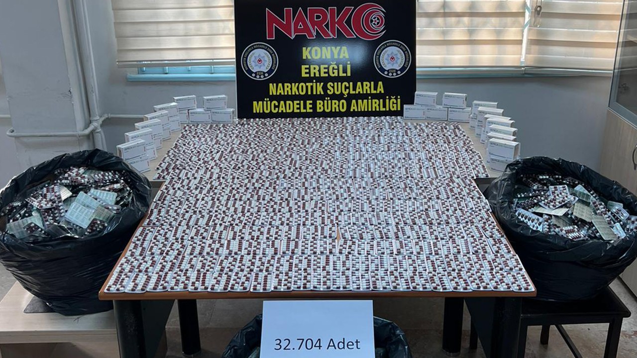 Ereğli Narkotik Suçlarla Mücadele Grup Amirliğine bağlı ekipler farklı zamanlarda yaptığı operasyonlarda 32 bin 704 adet uyuşturucu hap, 159,76 gram sentetik kannabinoid maddesi ve uyuşturucu yapımında kullanılan malzeme ele geçirdi.