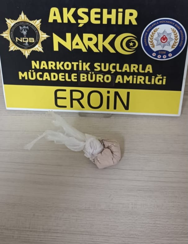 Akşehir İlçe Emniyet Müdürlüğü Narkotik Suçlarla Mücadele Büro Amirliği ekiplerince sokak satıcıları ve kullanıcılarına yönelik yürütülen çalışmalar kapsamında durumundan şüphelenilen bir araç durdurularak araçta ve şüpheli M.Ş. ve A.M.B.’nin üzerinde arama yapıldı. Şüpheli şahısların üzerinde yapılan aramalarda 17 gram eroin maddesi ele geçirildi.