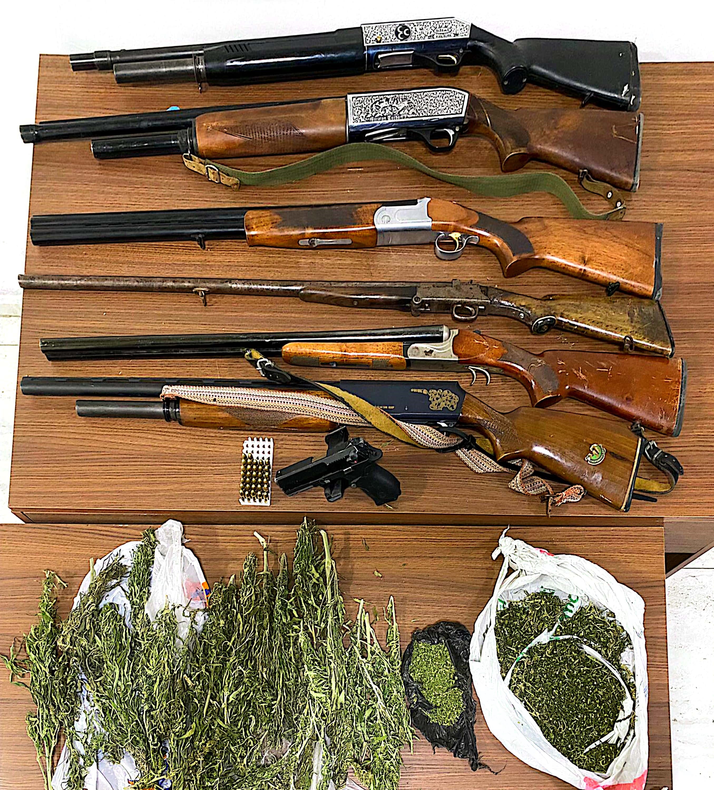 Yapılan çalışma sonrası polis ekiplerince adrese baskın gerçekleştirildi. Baskında M.Ç., H.Ç., B.Ç. ve S.Ç. gözaltına alındı. Adreste yapılan aramada ise ruhsatsız 6 adet tüfek, 1 adet ruhsatsız tabanca ve 1 kilo 135 gram esrar ele geçirildi.