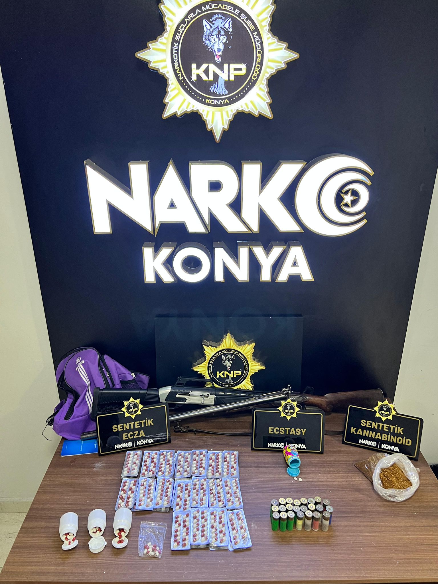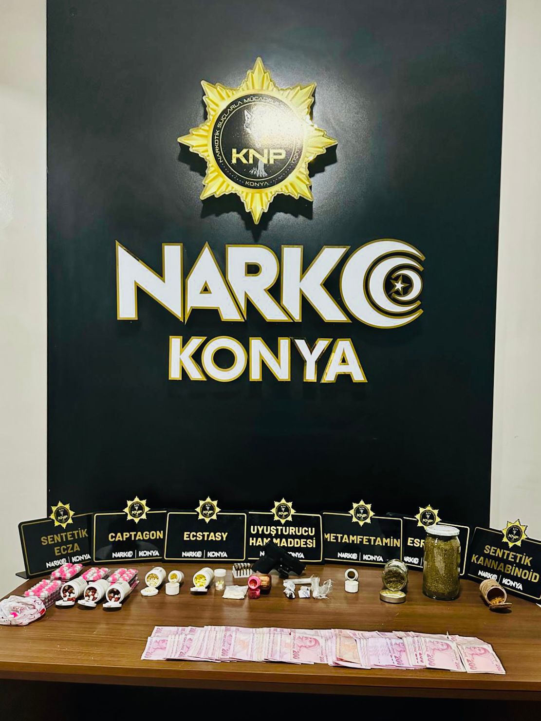 Yapılan aramalarda; 408 bin 92 adet sentetik ecza hap, 1.180 adet ecstasy, 701 adet captagon, 8 bin 172 kullanımlık peçeteye emdirilmiş sentetik kannabinoid, 637 gram sentetik kannabinoid, 313 gram esrar, 164 gram metamfetamin, 61 gram kokain, 124 gram bonzai hammaddesi, 18 kök hint keneviri ile birlikte çeşitli miktarlarda uyuşturucu madde ile ayrıca 1 ruhsatsız tabanca, 2 ruhsatsız tüfek, 3 hassas terazi, 42 adet fişek ile birlikte 120 bin 285 lira, 50 Euro ve 20 Dolar suçtan elde edildiği değerlendirilen para ele geçirildi.