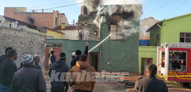 Konya'nın Kararay ilçesinde, müstakil bir evde çıkan yangında anne hayatını kaybederken, 3 yaşındaki oğlu ağır yaralandı.