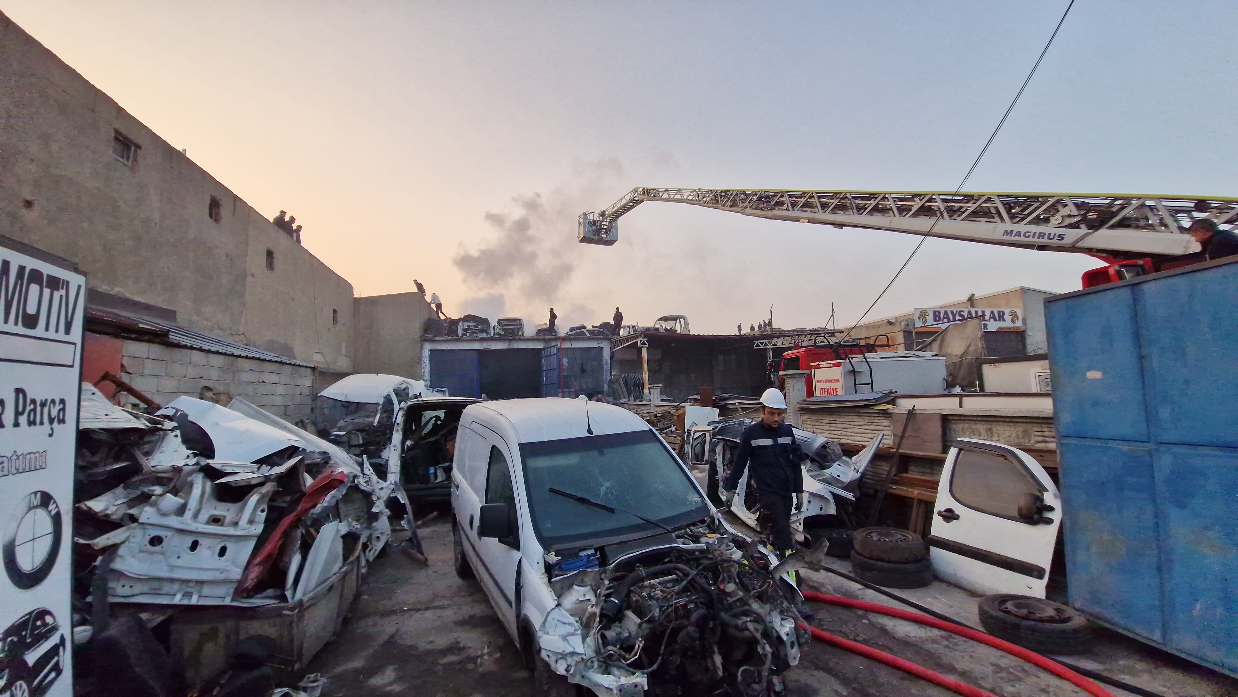 Konya'nın Selçuklu ilçesi Zafer Sanayi Kavakaltı Sokak üzerinde bulunan bir oto çıkma yedek parça dükkanında yangın çıktı.