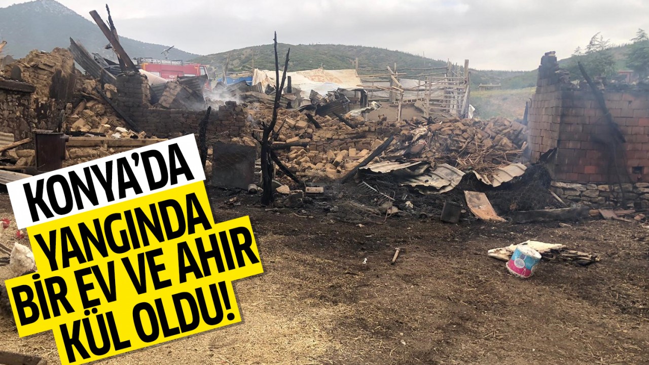 Konya’nın Hüyük ilçesinde çıkan yangında bir ev ve ahır yanarak kullanılamaz hale geldi.