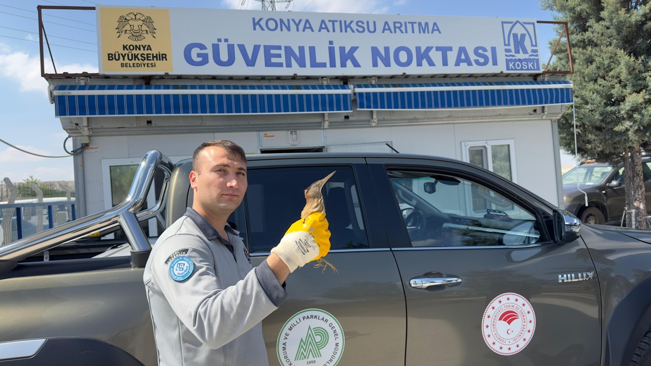 Açıklamada, "Konya Atıksu Arıtma Tesisimizin ormanlık sahasında bitkin halde bulunan ve nesli tehlike altında olan yaralı balaban kuşu, güvenlik ekiplerimiz tarafından bulundu. Tedavisinin yapılması için Doğa Koruma ve Milli Parklar Şube Müdürlüğü ekiplerine teslim edildi." bilgisi verildi.Kaynak: AA