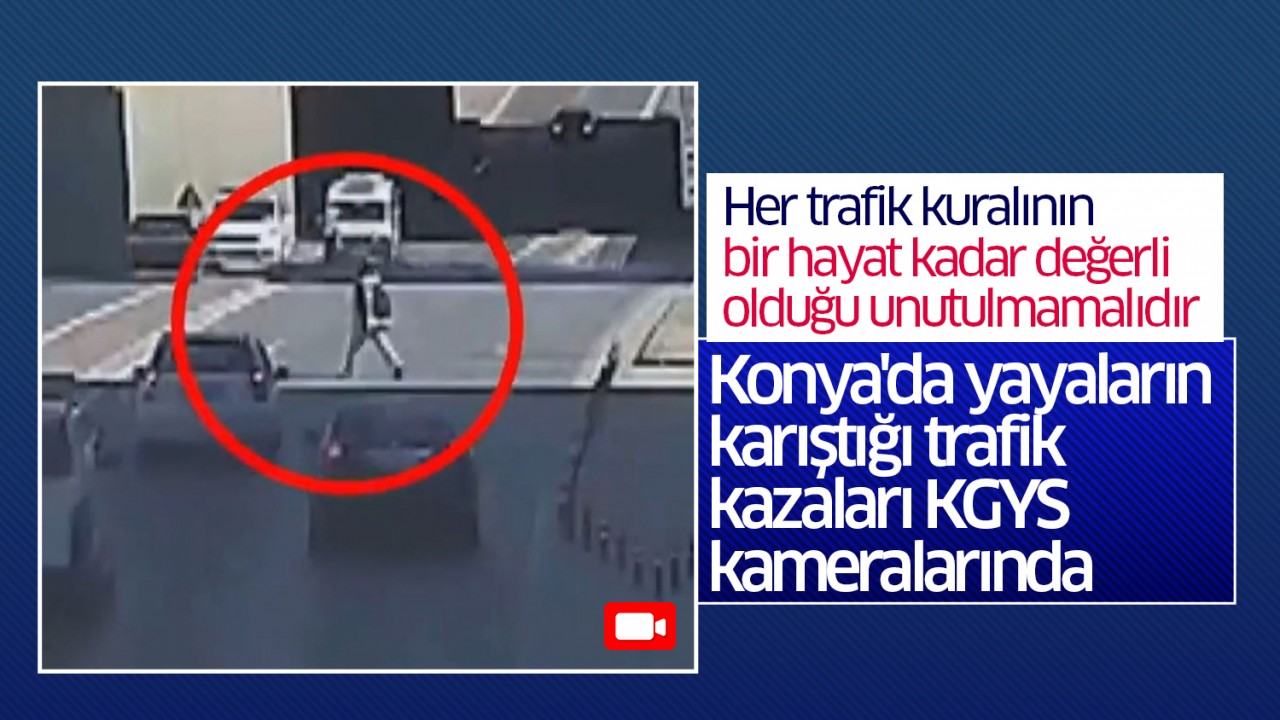 Konya'da yayaların karıştığı bazı trafik kazaları, Kent Güvenlik Yönetim Sistemi (KGYS) kameralarına yansıdı.