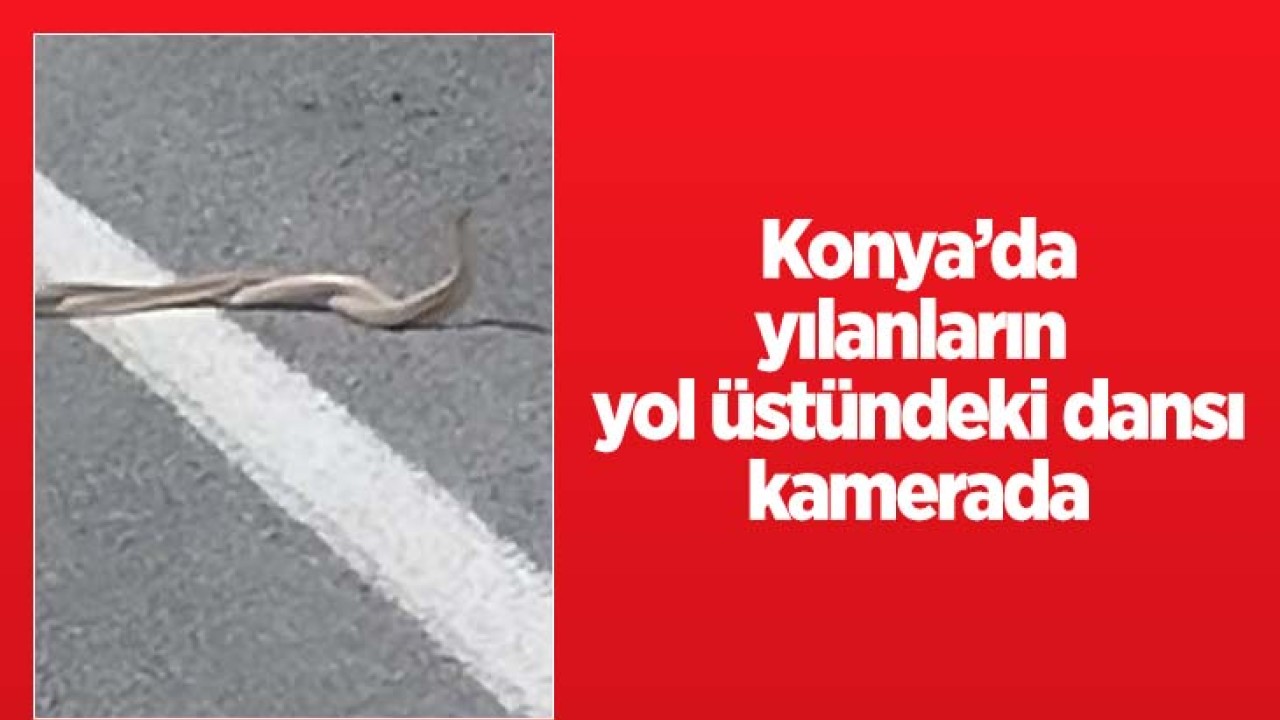 Konya'nın Cihanbeyli ilçesinde iki yılanın yol üzerindeki dansı, cep telefonu kamerasıyla kaydedildi.