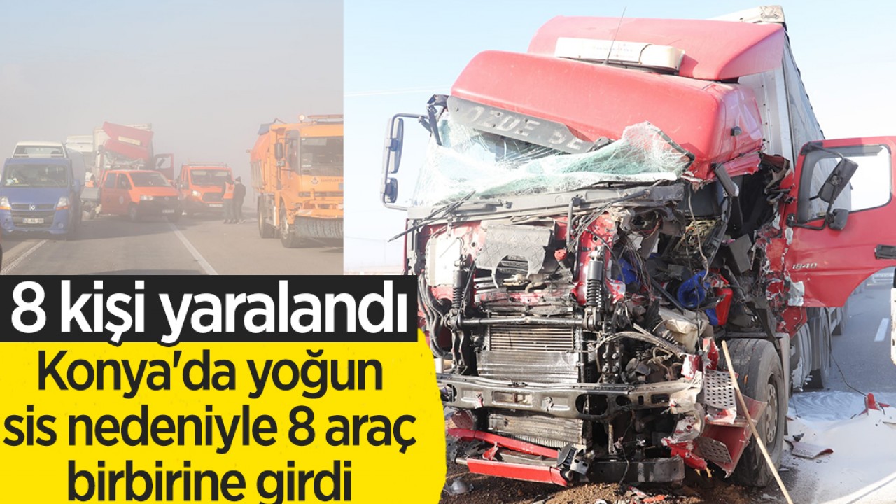 Konya'da yoğun sis nedeniyle görüş mesafesinin düştüğü yolda 8 araç birbirine girdi. 8 aracın karıştığı zincirleme trafik kazasında 8 kişi yaralandı.