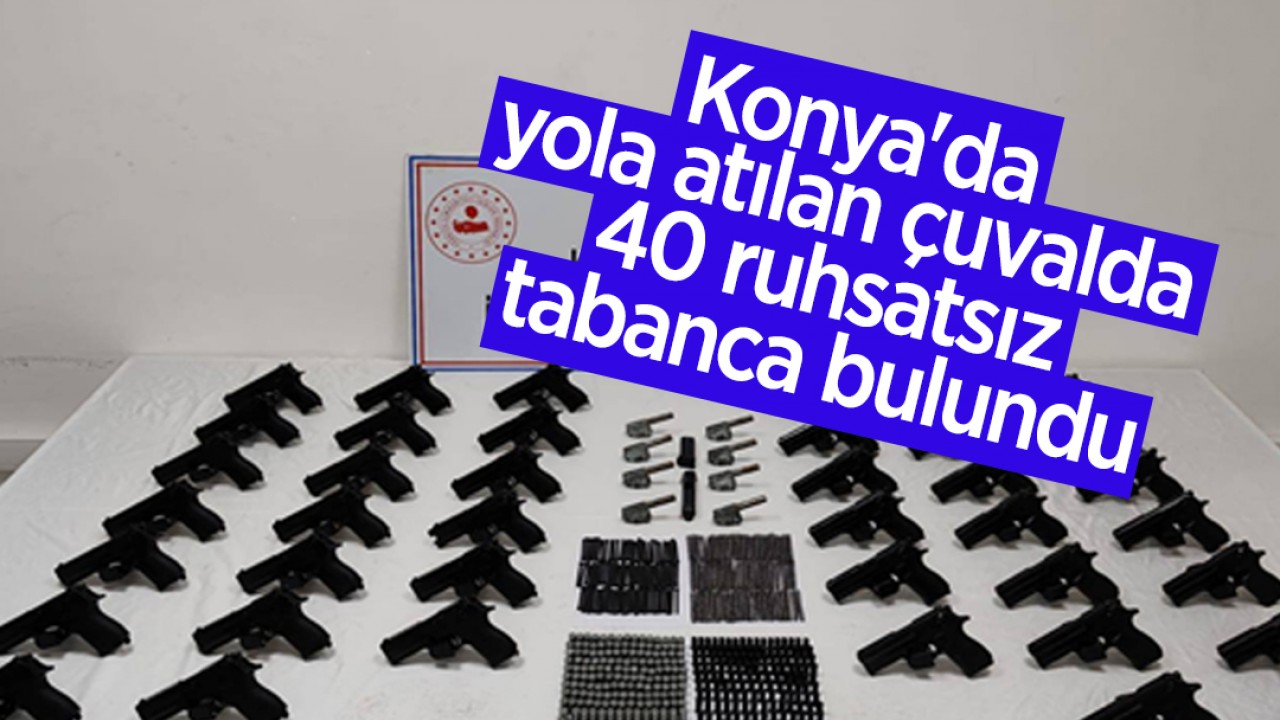 Konya'nın Beyşehir ilçesinde yola atılan çuvalda 40 ruhsatsız tabanca ele geçirildi.