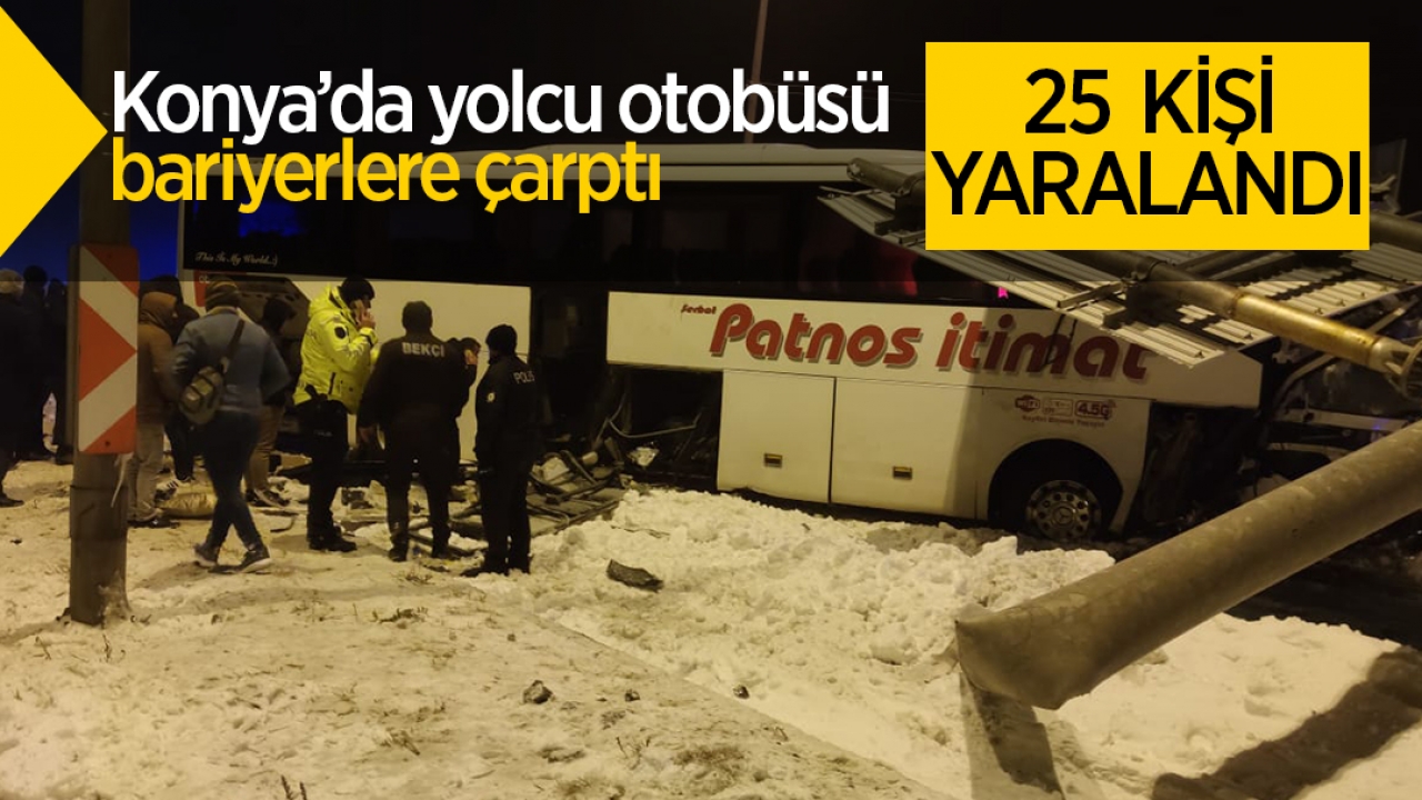 Konya'nın Kadınhanı ilçesinde yolcu otobüsünün bariyerlere çarpması sonucu yaralanan 25 kişi hastaneye kaldırıldı.