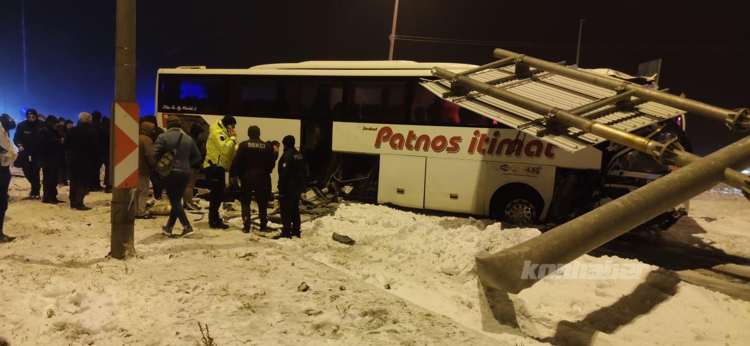 Ali K'nin kullandığı 44 ADS 720 plakalı yolcu otobüsü, Kadınhanı çevre yolu Ilgın çıkışında buzlanma nedeniyle kayarak bariyerlere çarptı.