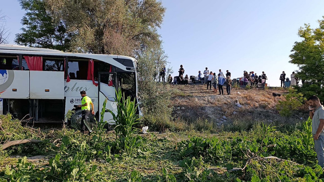 Konya'da yolcu otobüsünün şarampole inip, ağaçlara çarptığı kazada, 3’ü çocuk, 7 kişi yaralandı.