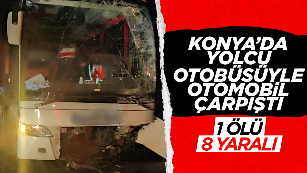 Konya'nın Derebucak ilçesinde yolcu otobüsü ile otomobilin çarpıştığı kazada 1 kişi öldü, 8 kişi yaralandı.
