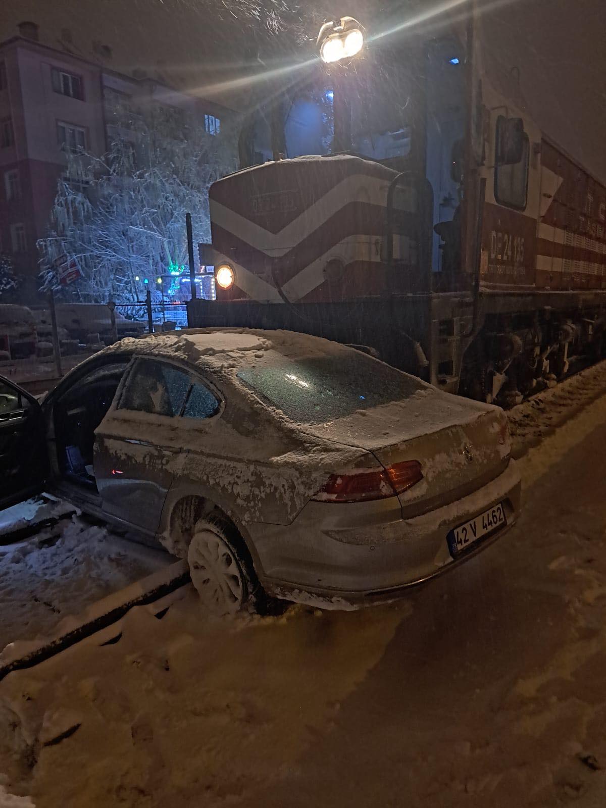 Konya'nın Ereğli ilçesi Hamdi Çağıran Alt Geçidi'nde yük treni otomobile çarptı. Otomobil çarpmanın etkisiyle Çömlekçi Geçidine kadar sürüklendi. Kazada yaralanan olmazken, otomobilde maddi hasar meydana geldi.