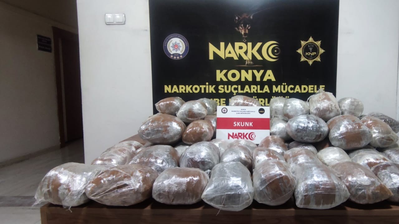 Konya Emniyet Müdürlüğü, Narkotik Suçlarla Mücadele Şube Müdürlüğü Ekiplerinin zehir tacirlerine karşı il girişinde yaptığı uygulamada şüphe üzerine durdurduğu araçtan zulalar halinde onlarca kilo uyuşturucu madde ele geçirildi.