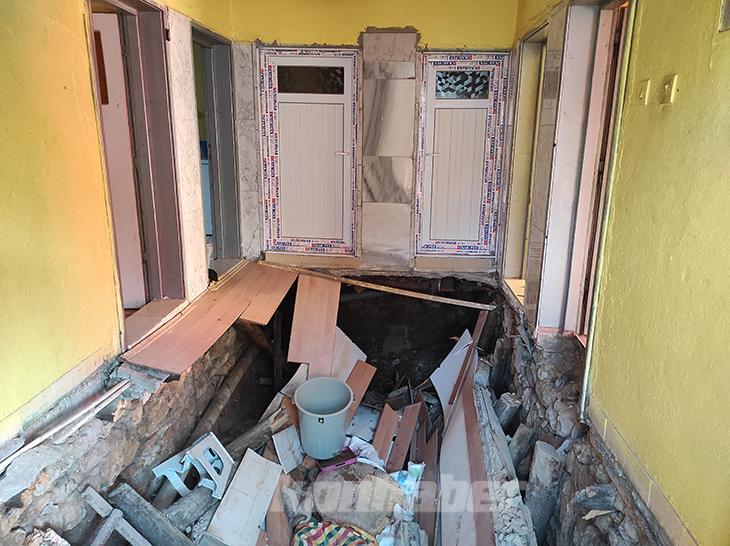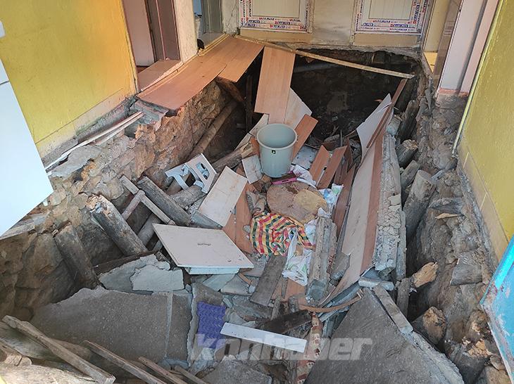 İlçeye bağlı Değirmenci Mahallesi 152852 Sokak'ta Cemal Aktaş'a ait müstakil evin zemini, henüz belirlenemeyen bir nedenle çöktü.