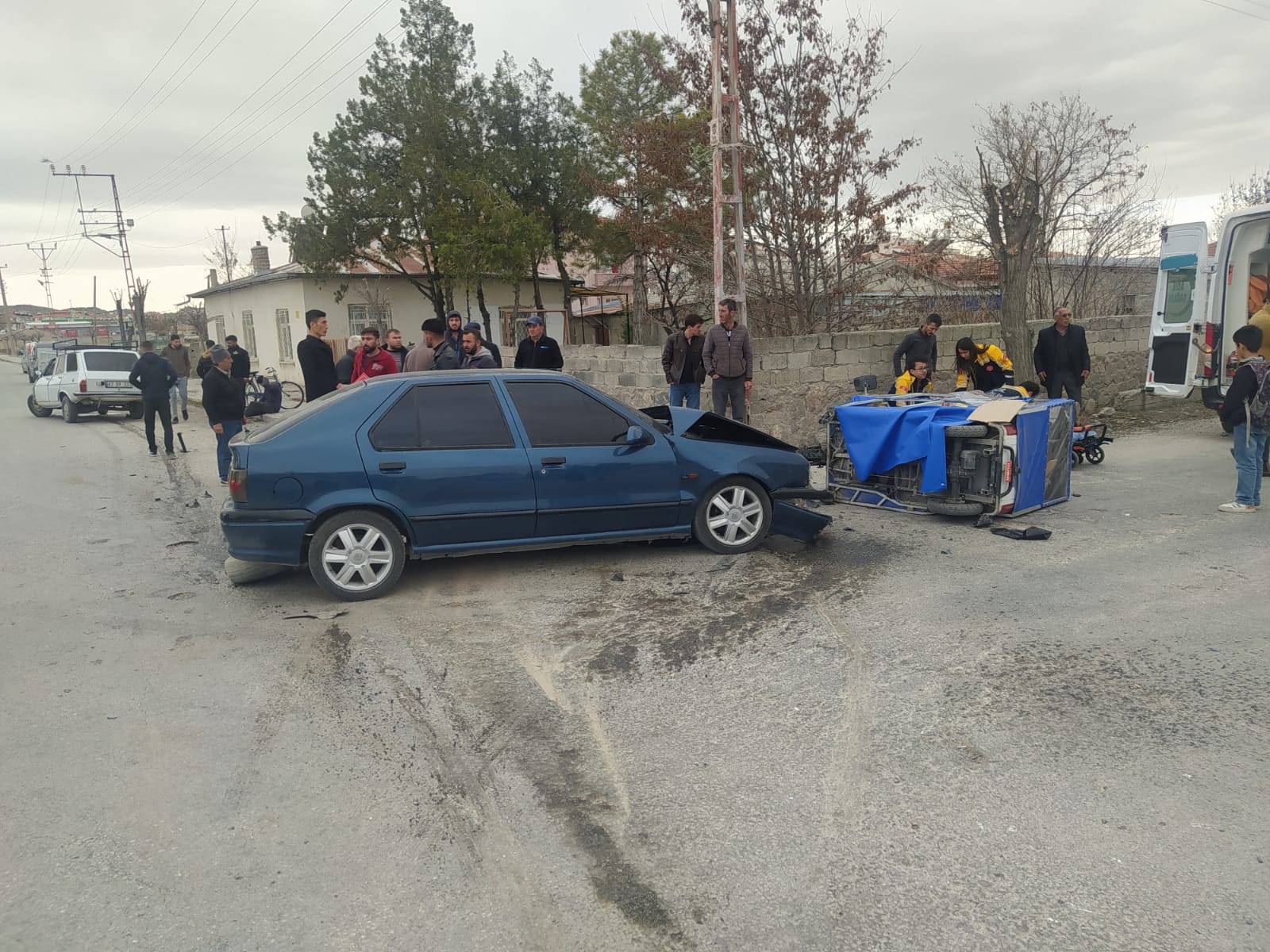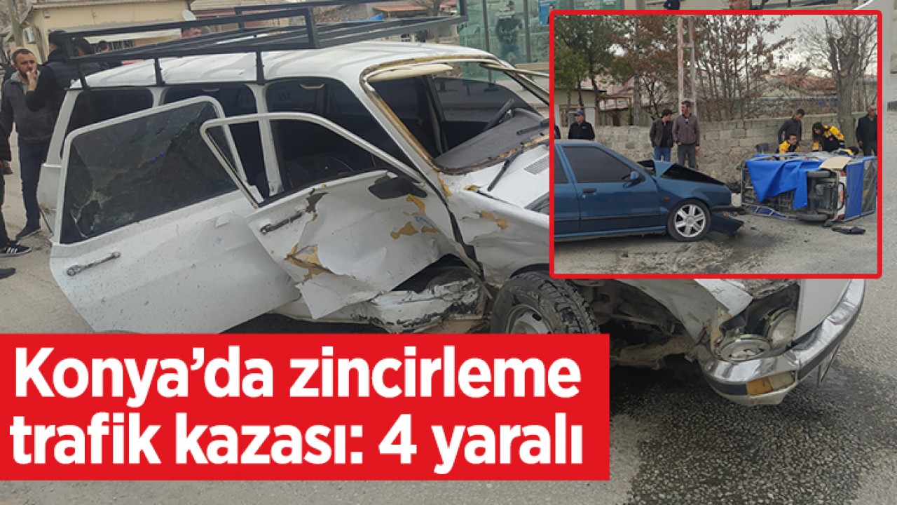 Konya'nın Karapınar ilçesinde iki otomobil ile üç tekerli motosikletin karıştığı kazada 4 kişi yaralandı.