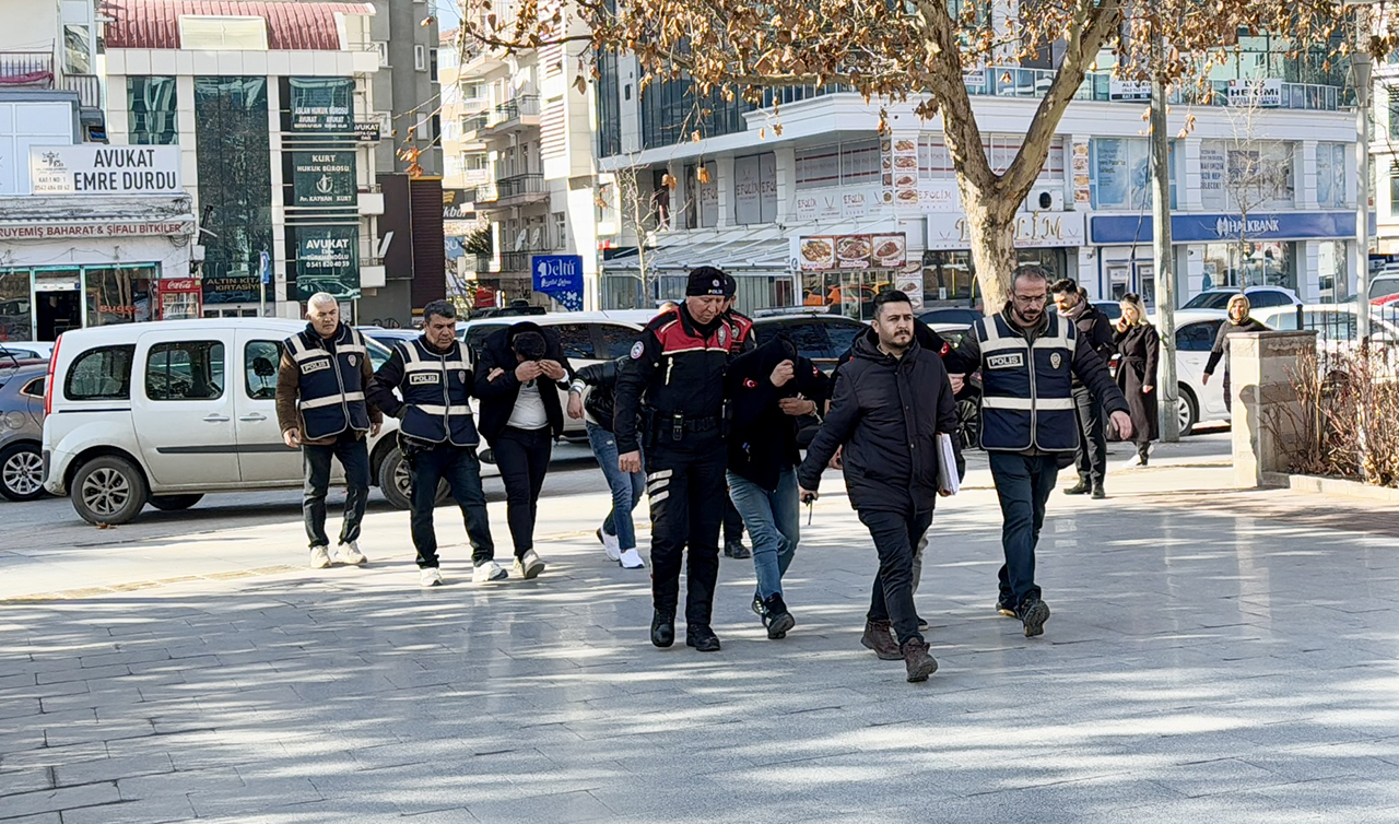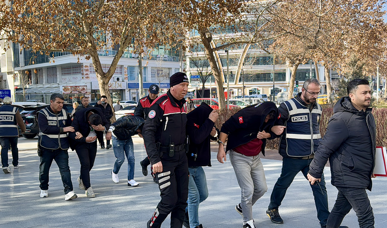 Kimlikleri belirlenen şüphelileri takip eden polisler, L.D. ve D.A'yı servis yeleği, alet çantaları ile kent merkezinde bir vatandaşı dolandırmak üzereyken suçüstü yakaladı. Bu kişilerle bağlantılı oldukları tespit edilen Y.V. ve M.G. de bir araçla kentten kaçmaya çalışırken kovalamacayla Kervansaray Mahallesi'nde gözaltına alındı.