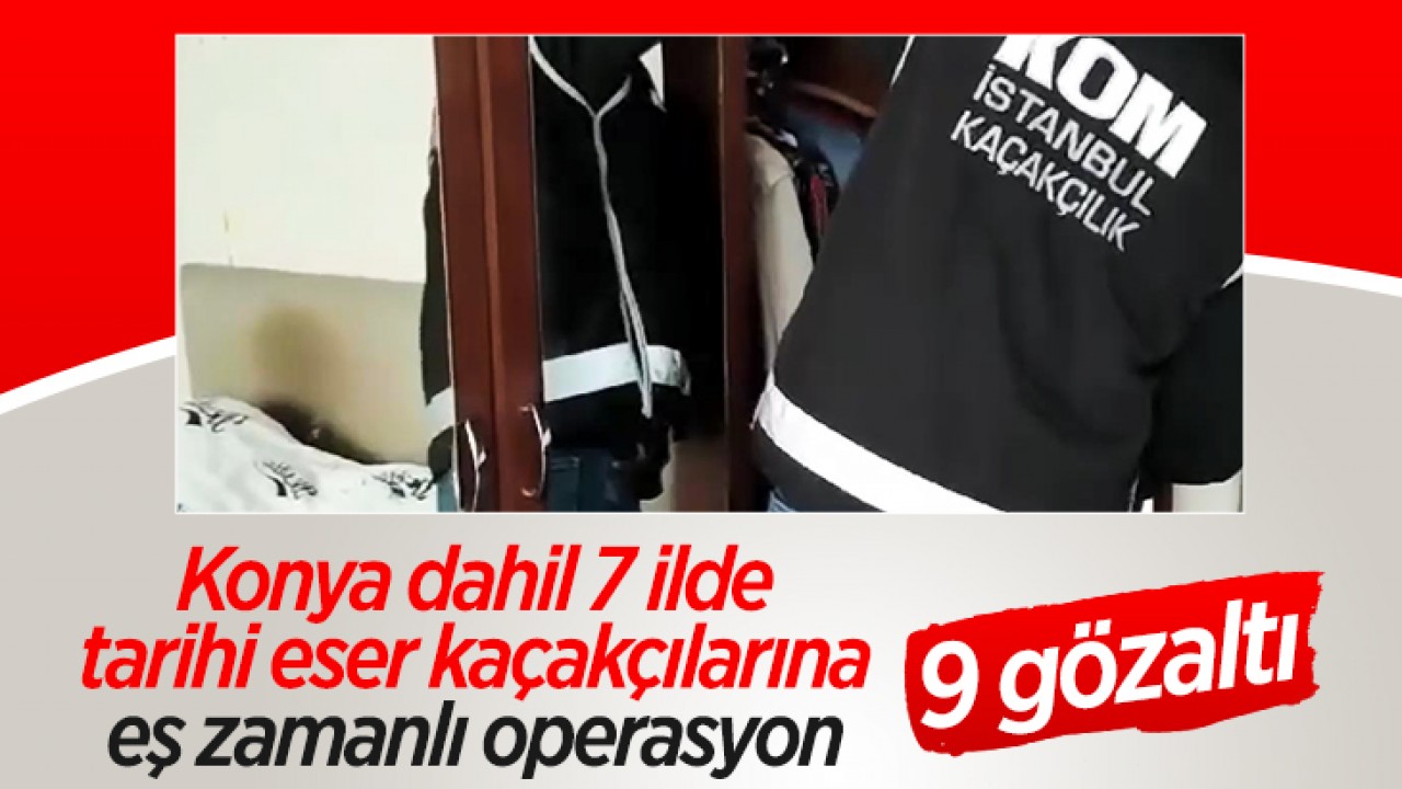 Konya'nın da aralarında bulunduğu İstanbul merkezli 7 ilde tarihi eser kaçakçılarına yönelik eş zamanlı operasyon düzenlendi. Operasyonlarda 9 şüpheli gözaltına alınırken, çok sayıda tarihi eser ele geçirildi.
